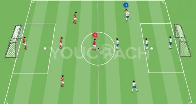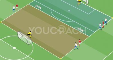 Vincere la superiorità numerica nel 2 contro 1 e nel 2 contro 2 più sponde laterali per la conclusione in porta, lavorando sulle transizioniTattica