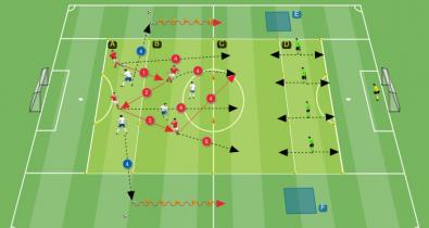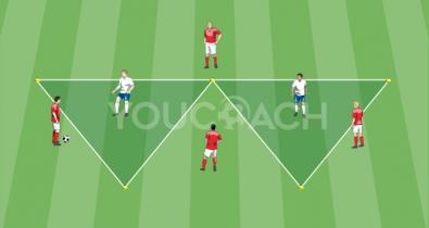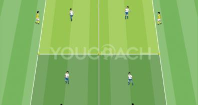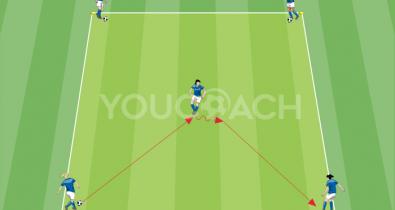 Situazione di 1 contro 1 più 2 contro 1 per allenare il dribbling, la fantasia e la gestione della superiorità numerica in fase offensivaTattica