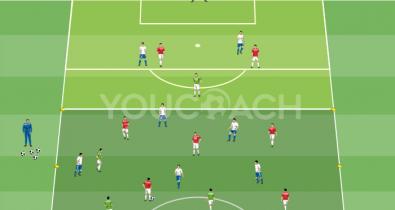 Partita a tema per migliorare lo smarcamento ed il mantenimento del pallone in situazioni di superiorità numericaTattica