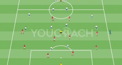 Gioco condizionato 7 contro 7 con jolly interno e sponde esterne per possesso palla in superiorità numericaPagine