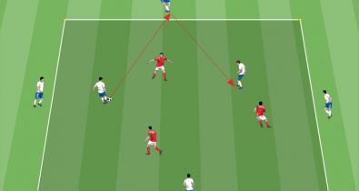 Situazione semplificata di possesso palla per allenare i giocatori al passaggio ed allo smarcamentoTecnica
