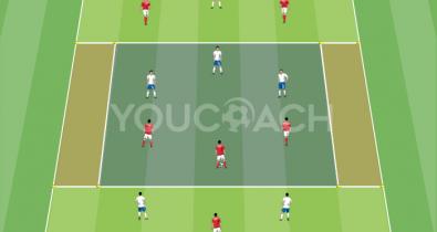 Gioco condizionato 7 contro 7 con jolly interno e sponde esterne per possesso palla in superiorità numericaPagine