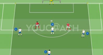 Esercitazione per allenare la squadra in possesso a sfruttare situazioni di superiorità numericaTattica