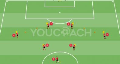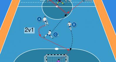 Esercizio per allenare gli scambi stretti in velocità e la conclusione in portaTattica