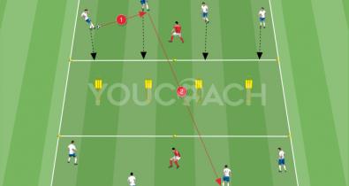 Esercitazione tecnico-tattica per allenare la linea difensiva nelle fasi di possesso e non possessoPagine