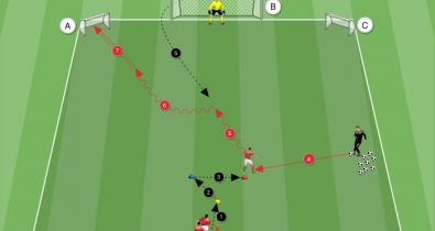 Trasmissione e doppio tiro in porta: frontale con attacco palla e dopo ricezione orientata