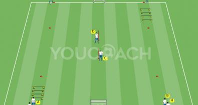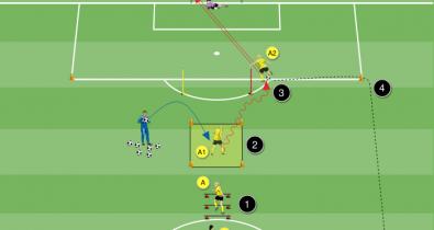 Esercizio tecnico-coordinativo che allena la rapidità, il controllo orientato e il tiro in portaPagine