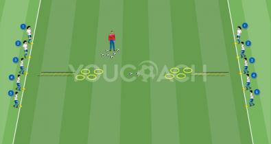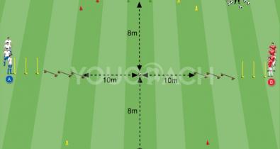 Stazione motoria con stimoli cognitivi per allenare la velocità e la rapidità di elaborazione nell'uno contro unoTecnica