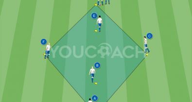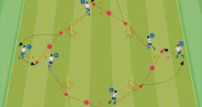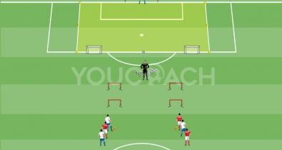 Esercizio situazionale con elementi coordinativi e di psicocinetica per allenare diverse situazioni tattiche e la conclusioneTecnica