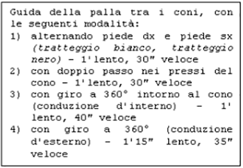 Tempo di lavoro del III° blocco: 10' (5' A dal cono sx; 5' A dal cono dx)