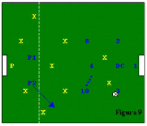 Fig.8: 9(gialli) > 8 (blu, squadra "titolare" schierata a 1 punta). A tocco libero.