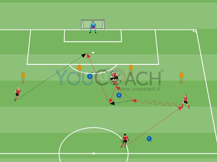 - Un altro buon esempio di azione offensiva che sfrutta la velocità degli attaccanti esterni può essere la conclusione dopo un cross dalla fascia.