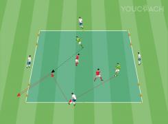 Tattica11 Ottobre, 2021Marcamento - Partita a tema su due zone con diversi obiettivi tecnico-tattici: difesa in parità ed inferiorità numerica, finalizzazione su porta regolamentare e su due porticine