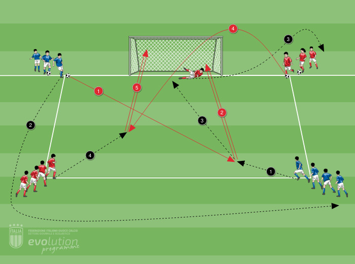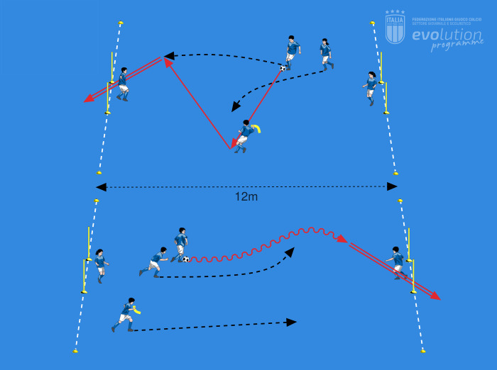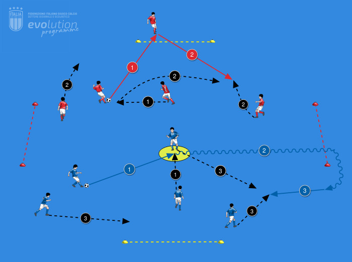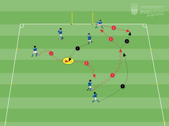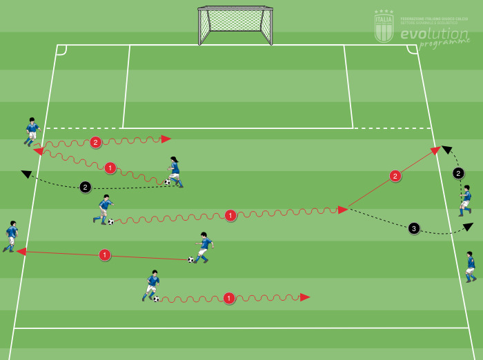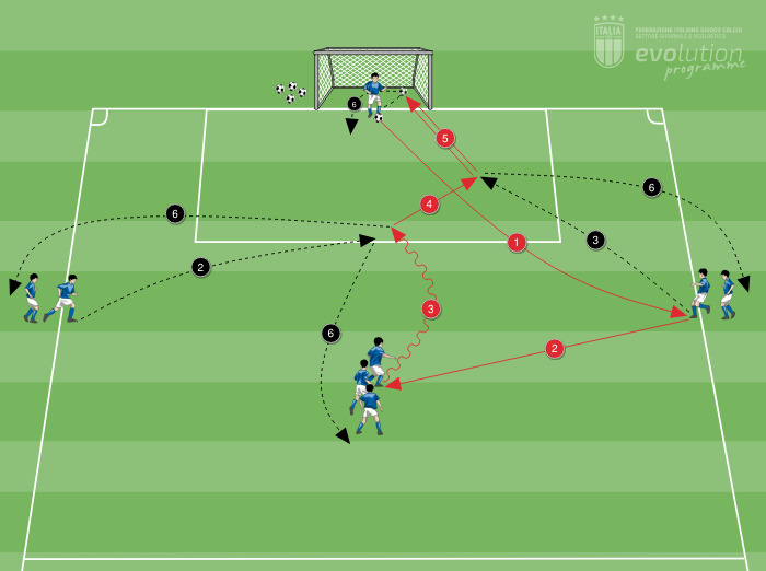 Combinazione offensiva per il 4-4-2: imbucata del centrocampista per il movimento a sfilare dell'attaccante