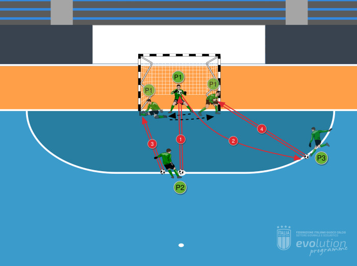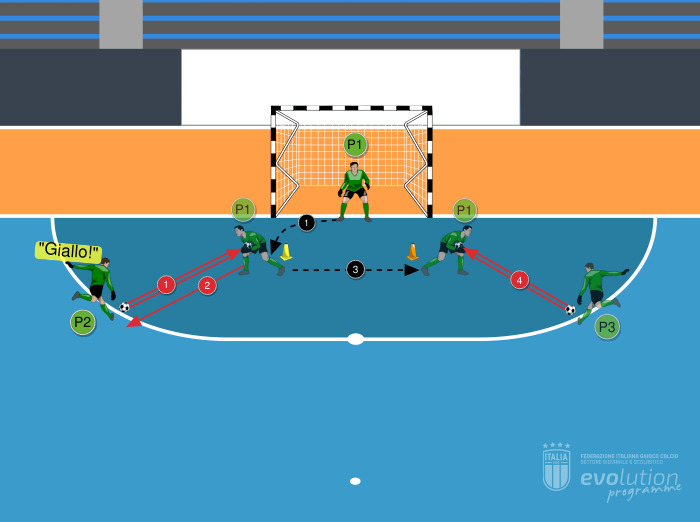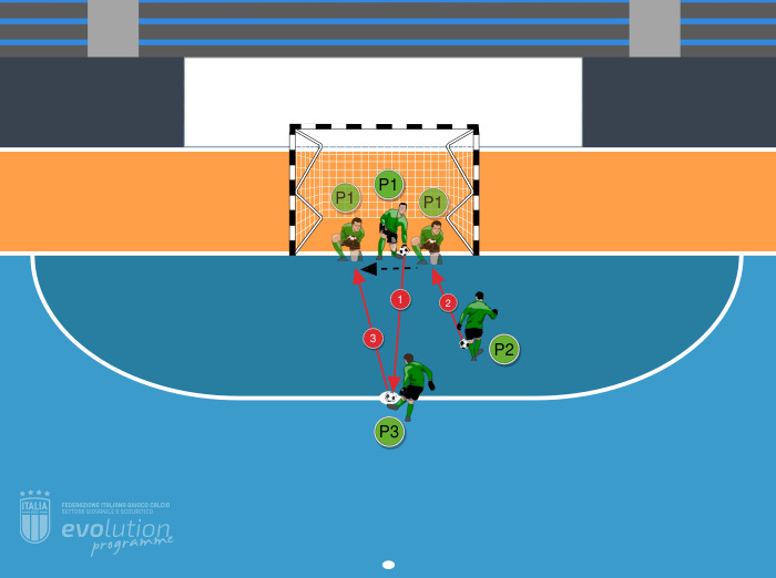 Schema su punizione centrale: conclusione da fuori in tre tempi