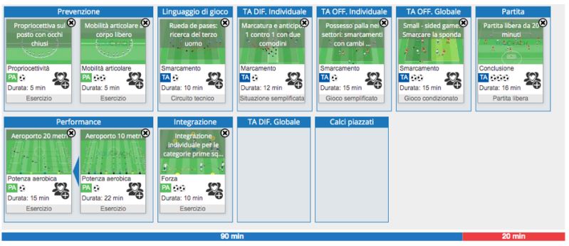L'organizzazione dei blocchi di allenamento prevede un totale di 10 momenti utilizzabili a piacimento nelle singole sedute che si dividono in blocchi fisici (comprendenti sia l'aspetto performance che la prevenzione), tecnici e tattici.