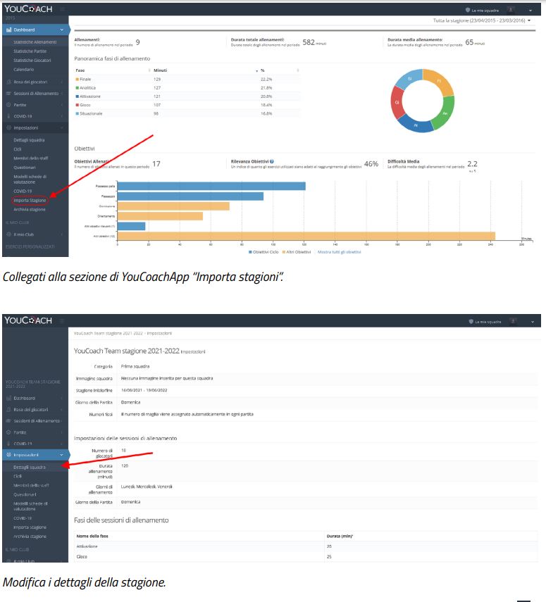 - collegati alla sezione di YouCoachApp Importa stagioni;