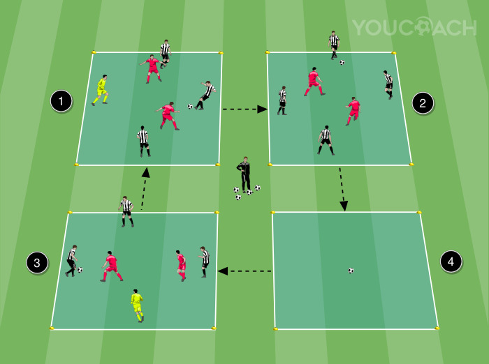 Smarcamento - Possesso palla in superiorità numerica con due sponde laterali utile per il controllo orientato e il dai e vai in un contesto situazionale -