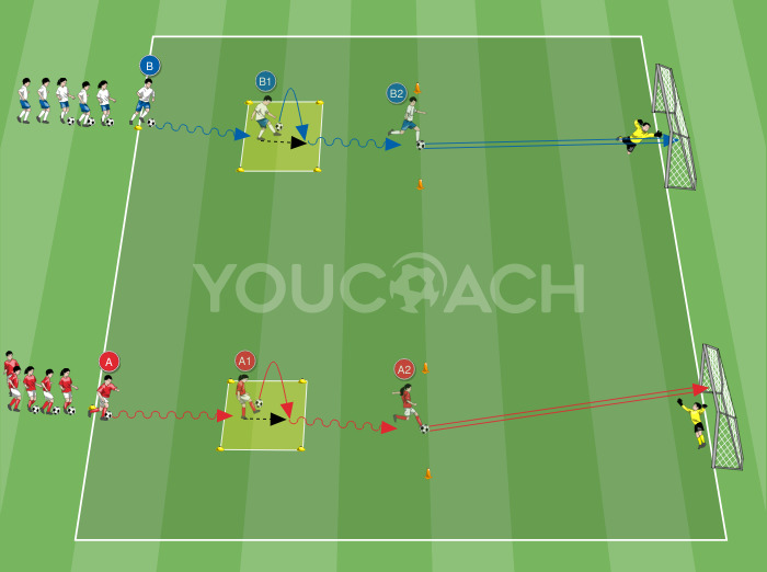 Doppio rettangolo: uscita da zona di costruzione per 1 contro 1 in zona di finalizzazione
