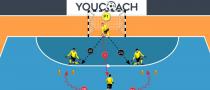 - I giocatori dopo la trasmissione palla ai compagni di squadra devono muoversi immediatamente per scattare verso il cono. Reazioni veloci