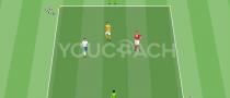 Small-sided Game con finalizzazione in situazione di superiorità numerica 3 contro 2, allenando le transizioni, la velocità di reazione ed adattamento alle fasi offensiva e difensiva |