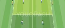 Esercizio di conclusioni sottomisura su cross o traversone laterale con scelta di attacco dello spazio sul punto di caduta palla |
