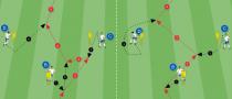 - Curare la marcatura individuale e quella di reparto a due in entrambe le metà campo: situazioni di 2 contro 2