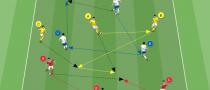 Esercitazione stimolante ad allenare la squadra in possesso palla ad una continua mobilità per rendersi il più imprevedibile possibile alla squadra avversaria |
