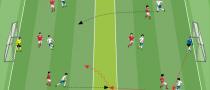 Gioco condizionato 7 contro 7 per migliorare la velocità di gioco durante le fasi di possesso palla |