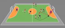 Esercitazione situazionale che allena il contromovimento e il tiro in porta |