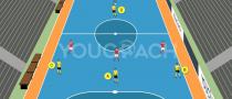 - Se il difensore A recupera il pallone, può cercare di finalizzare nella porticina opposta, con B che diventa difensore