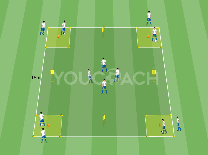 - Al via dell'allenatore, le due squadre si sfidano in uno small-sided game a onda con l’obiettivo di realizzare gol