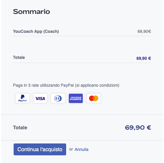 Acquistare l'applicazione web YouCoachApp è semplice e veloce: