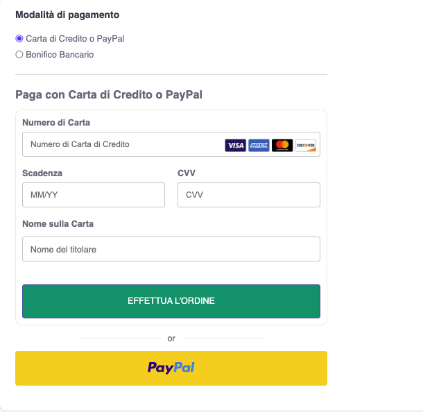 Opzione Carta di Credito: