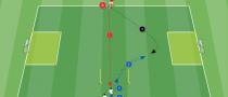 - Quando l'attaccante riesce ad ricevere palla uno dei giocatori rossi deve andare velocemente a sostegno del compagno. Dopo aver ricevuto la sponda può concludere in porta oppure entrare nell'area di rigore avversaria per andarsi a giocare un 2 contro 2 per la finalizzazione
