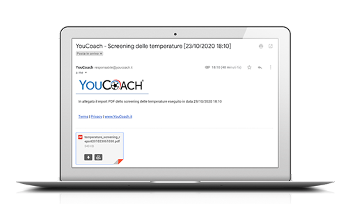 Il valore aggiunto di questo nuovo modulo di YouCoachApp consiste nella vidimazione del registro delle temperature via mail.