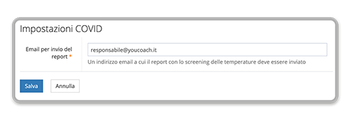 - Inserisci un indirizzo email a cui inviare il report con lo screening delle temperature