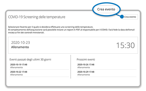 - Inserisci un indirizzo email a cui inviare il report con lo screening delle temperature