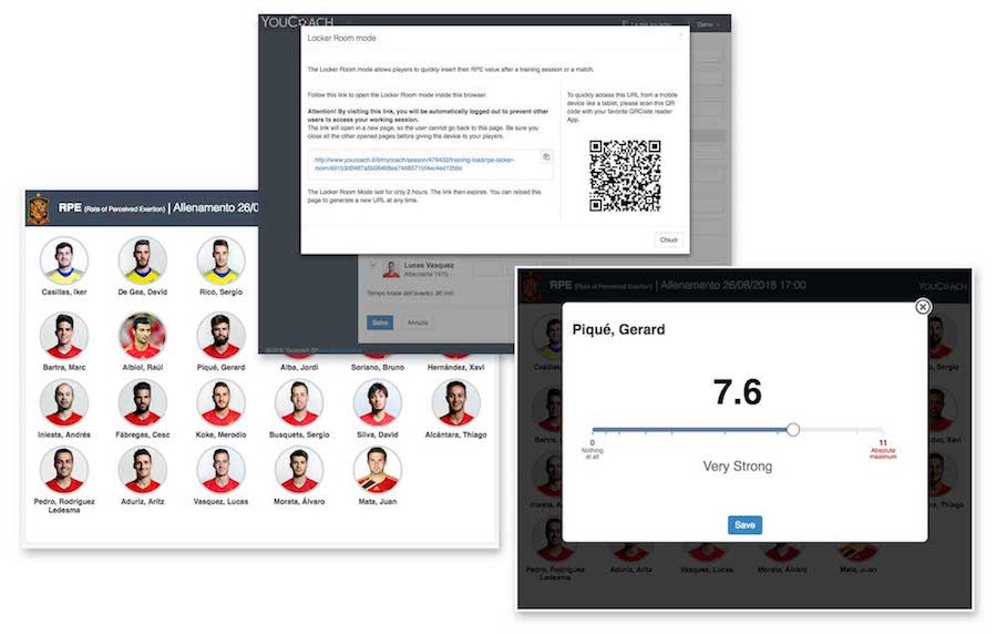 L'innovativa “Modalità spogliatoio” consente ai calciatori di inserire il proprio RPE direttamente in spogliatoio e senza conoscere i valori espressi dai compagni.