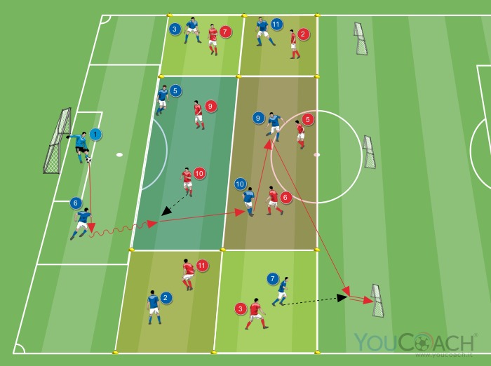 8 contro 8 + portiere: costruzione dal basso mantenendo i ruoli in uno spazio determinato |