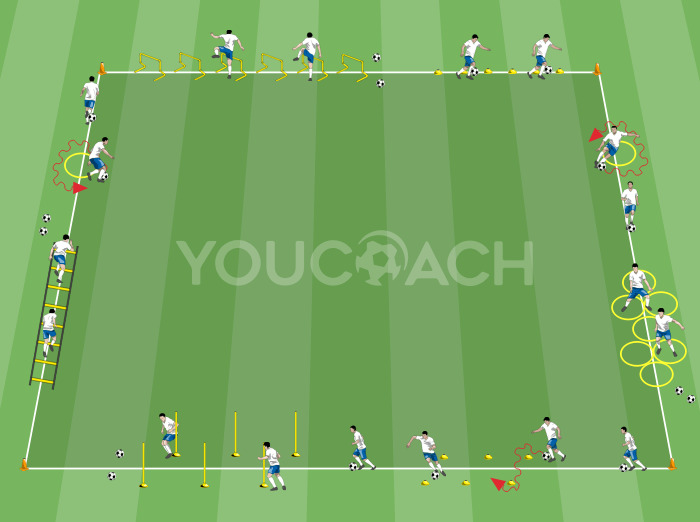 Dominio della palla - Attivazione tecnica con dominio palla alternato ad esercizi di mobilità articolare e stretching dinamico -