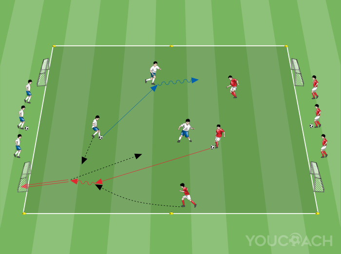 Leggere le intenzioni - Esercitazione situazionale 3 contro 3 con due palloni per stimolare la creazione di linee di passaggio, le transizioni e la collaborazione -