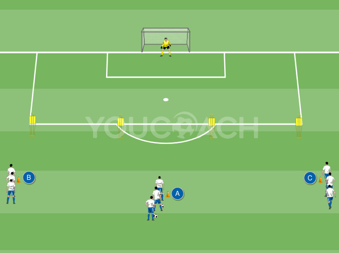 Traversone - Esercitazione situazionale con ricerca dell'ampiezza e traversone oltre la linea difensiva per la conclusione -