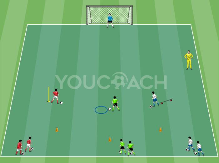 Tiro in porta - Esercizio tecnico per il passaggio, il dribbling e il tiro in porta -