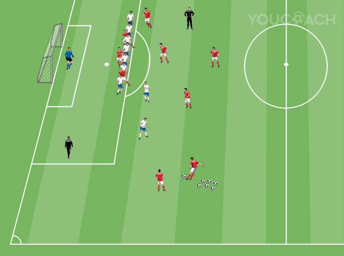 Schema su punizione centrale: conclusione da fuori in tre tempi