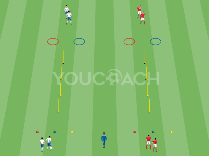 Reazione - Esercitazione tecnico motoria con stimoli cognitivi in guida palla e duello 1 contro 1 -