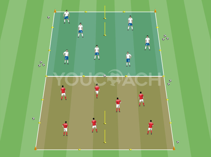 Possesso palla - Partita a tema 6 contro 6 o 7 contro 7 con manovra sviluppata in ampiezza per la ricerca della profondità -