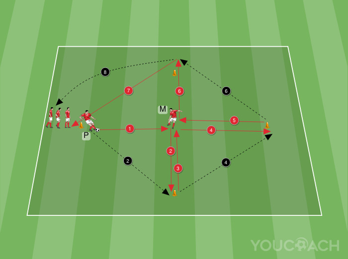 Passaggio - Allenare il passaggio diagonale per scarico e profondità e le triangolazioni attraverso la stazione a diamante -
