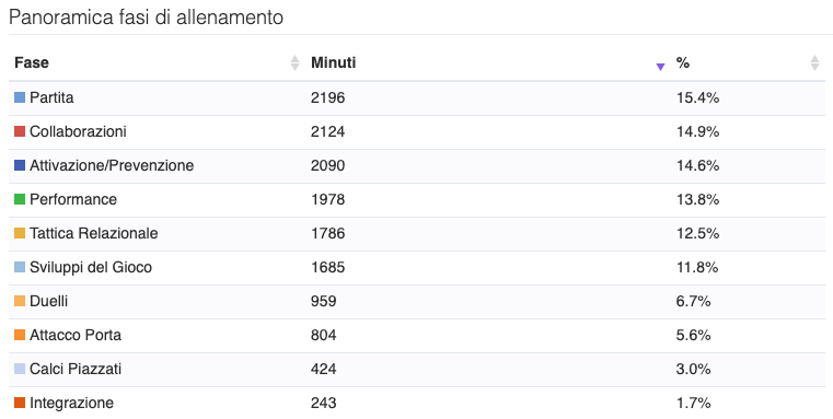 ​43 settimane di lavoro con due sedute settimanali più partita, 113 sedute di allenamento complessive e 1107 esercitazioni diverse.