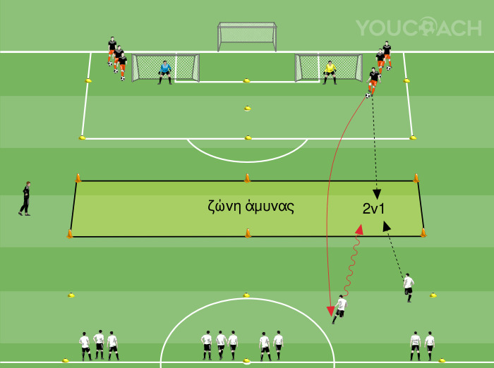 2 contro 1 - Esercizio di riscaldamento per allenare la difesa in situazioni di inferiorità numerica -